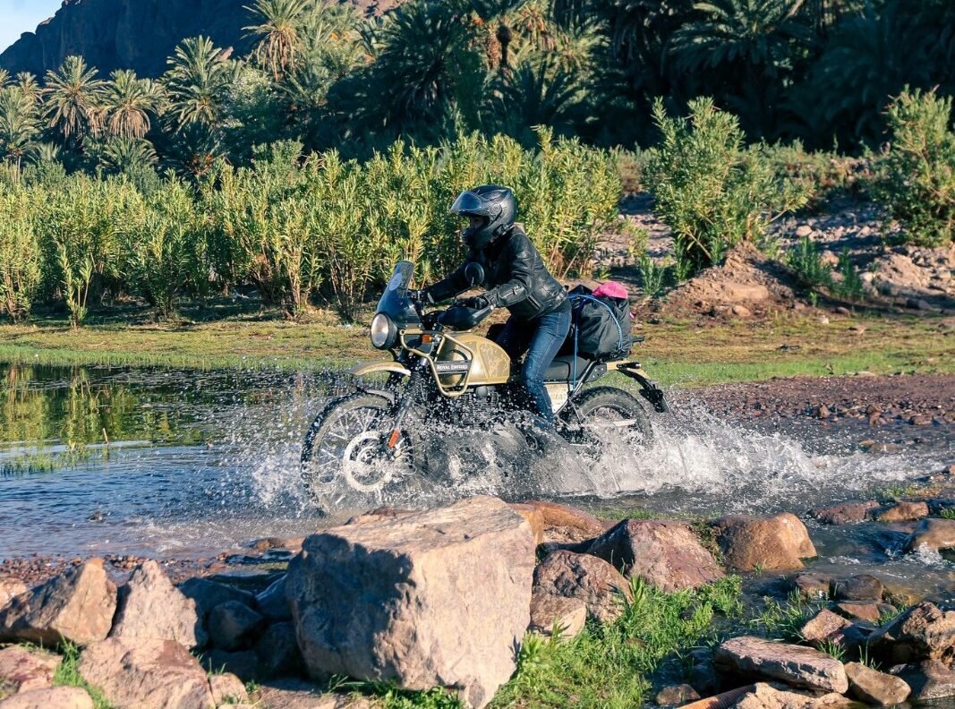 Idéal pour une Royal Enfield Himalayan ou une BMW GS qui peuvent s’aventurer sur la petite piste d’accès